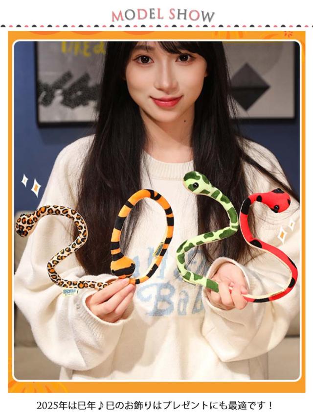 | 【全6種!カラフルなデザイン。】 2025年は巳年♪巳のお飾りはプレゼントにも最適です! モッチリと柔らかく、かわいいぬいぐるみです。 腕、首に巻きしてみたり、長さを活かして、撮影道具など、色々遊べます。 | |
