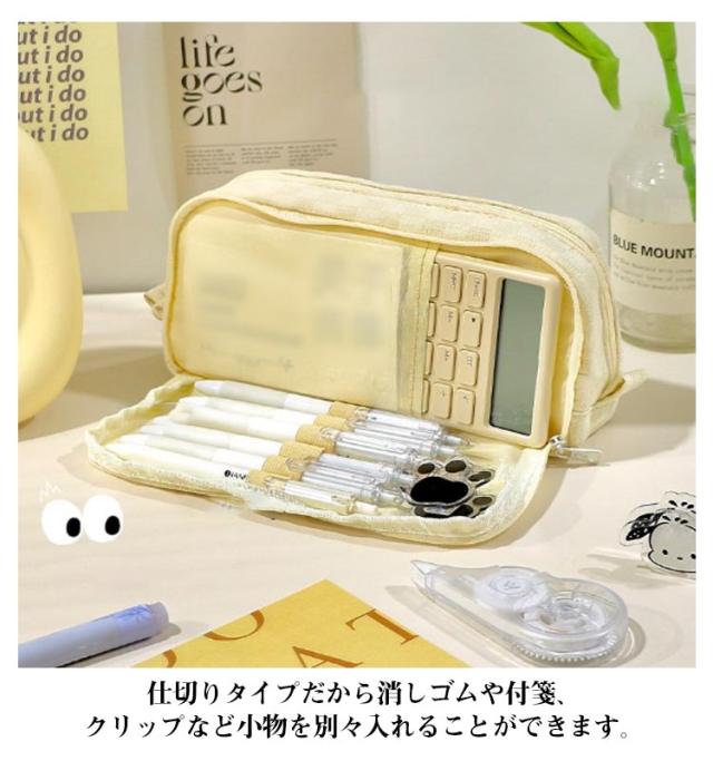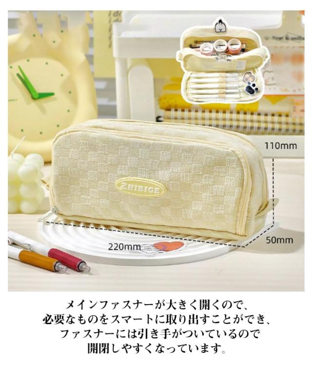 | 小物の収納もスッキリ!大容量ペンケース 仕切りタイプだから消しゴムや付箋、クリップなど小物を別々入れることができます。 丈夫で厚手な生地を使用、長くご愛用頂けます メインファスナーが大きく開くので、必要なものをスマートに取り出すことができ、ファスナーには引き手がついているので開閉しやすくなっています。 使い方いろいろ、メイクポーチにも便利、コンパクトだから旅行にもgood! シンプルで使いやすいデザインで学生から社会人にも使える優秀アイテムです。 | |