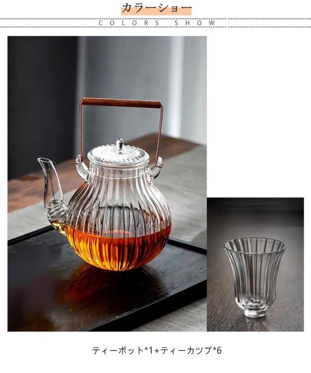 茶碗 菊モデル ティーポット セット 耐熱ガラス 6人 直火 ガラスティーポット 茶こし付き 茶碗 700ml 手作り レトロ おしゃれ ガラス製ポット 銅製持ち手 透明感 紅茶ポット 湯沸かし フルーツティー 花茶 工芸茶 ハーフティー