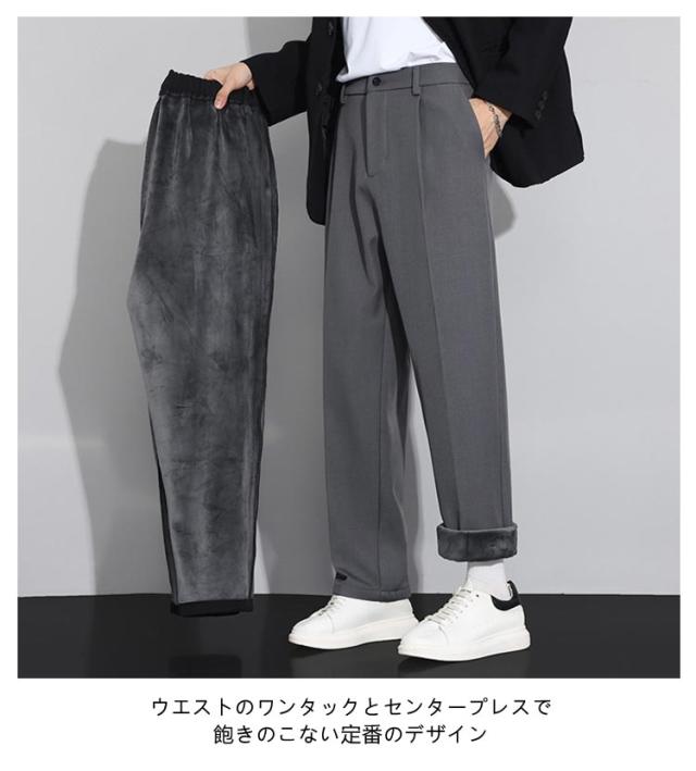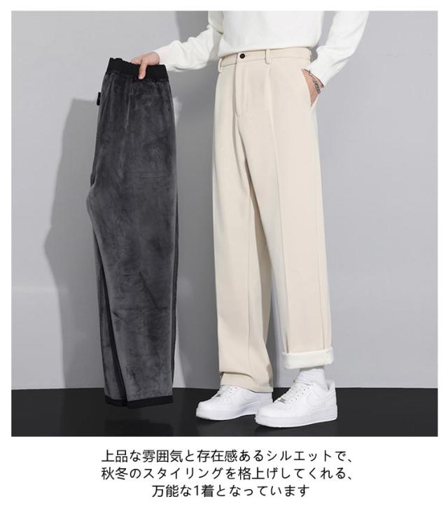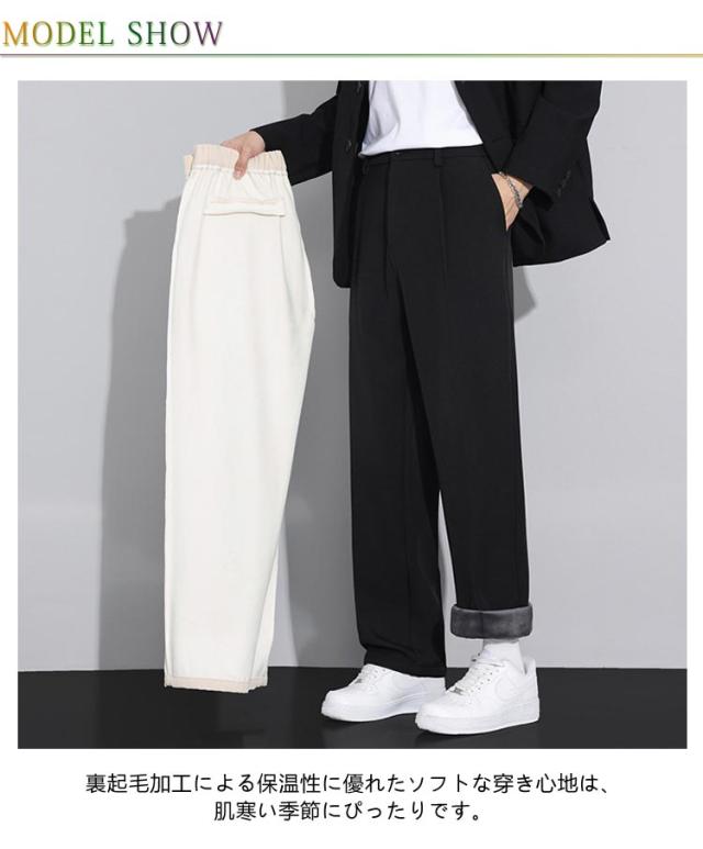 スーツパンツ 冬用 ハイウエスト 裏起毛 カジュアル スラックス ストレート 暖かい センタープレス カジュアルパンツ ワンタック 秋冬 防寒 保温 メンズ 暖パン スラックス 後ろゴムウエスト 大きいサイズ 紳士 ワイド 通勤 ズボン 裏起毛パンツ 白 黒