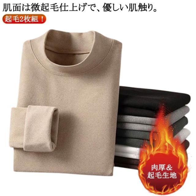 2枚セット 両面起毛 ヒートテック メンズ 長袖 インナー インナーシャツ 防寒着 防寒 肌着 あったか ヒートインナー あったかインナー ロンT Tシャツ カットソー タートルネック ハイネック 秋冬 裏起毛 保温 極暖 吸湿発熱 インナー ストレッチ 大きいサイズ 無地 送料無料