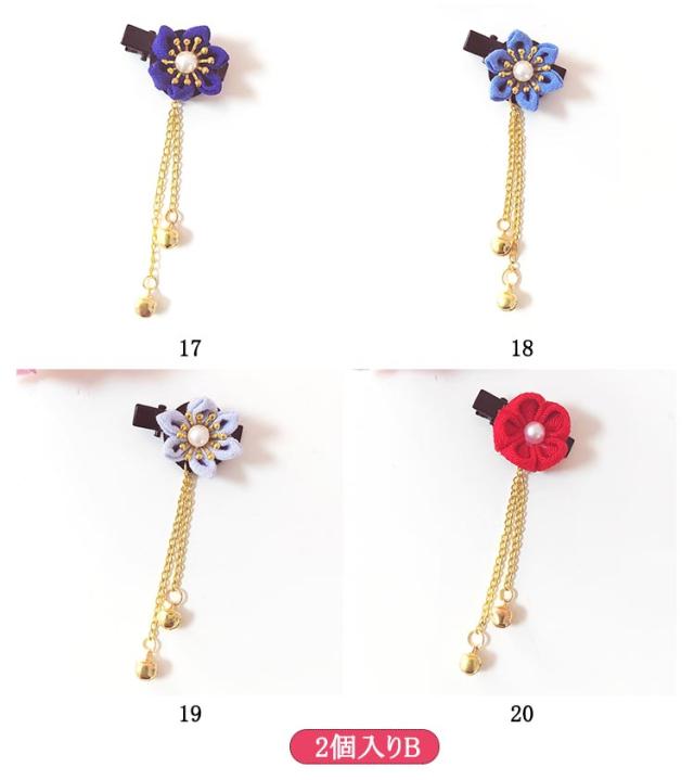 | ・七五三・卒園式・お正月・ひな祭りなどの着物や袴などの和装にピッタリ! ・2本あわせてボリュームを出したり、左右につけたり、ご自由に組み合わせできます♪ ・クリップ留めなので、ショートカットの方や、小さなお子様の髪にもお使いやすい | |
