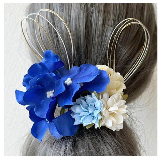 | サイズについての説明 | ダークブルー花直径:10cm/ライトブルー花直径4cm/クリームホワイト花直径:4.5cm ※実寸はメジャー採寸の為、若干の誤差が生じる場合があります。 |