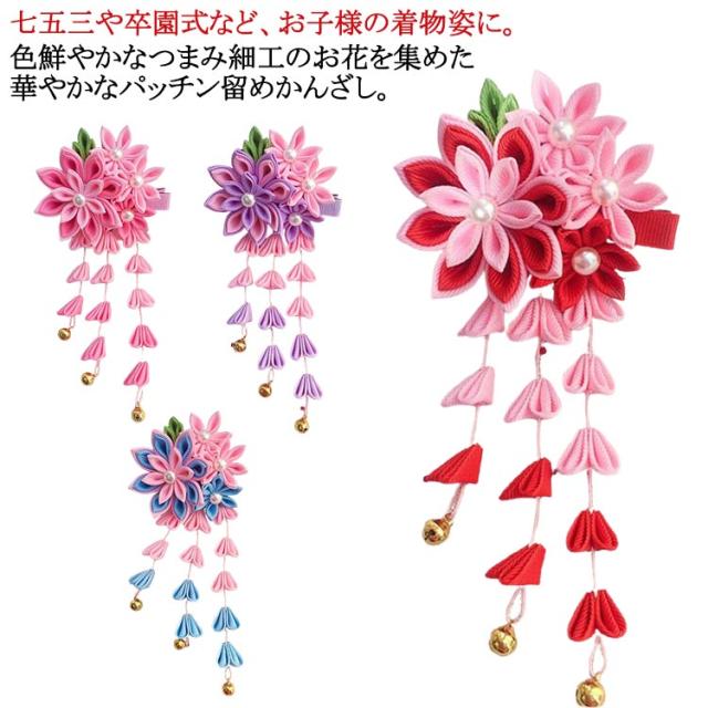 髪飾り 七歳 3歳 パッチンピン 7歳 子供 五歳 紫 花 七五三 花 着物 つまみ細工 パッチン留め 赤 黒 ピンク 七五三 和装 黄 5歳 ヘアアクセサリー 753 三歳 袴 桃の節句 浴衣 卒園式 卒業式 十三参り 十歳の祝い