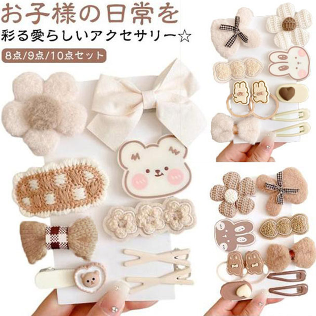 キッズ ヘアピン 子供 ベビー ヘアピン 赤ちゃん ヘアピン ヘアアクセサリー 髪留め かわいい おしゃれ 花 リボン クマ お誕生日 プレゼント 9点セット 10点セット 8点セット キッズ 小物 ベビー女の子 送料無料