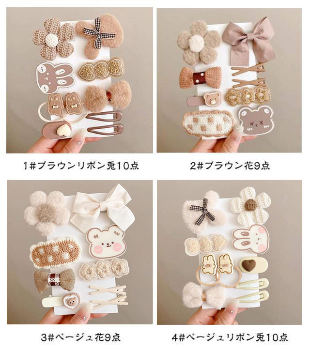 | 8点/9点/10点セット お子様の日常を彩る愛らしいアクセサリー☆ セットには、花、リボン、クマのモチーフが含まれており、 どれも子供たちの可愛らしさを引き立てるデザイン。 素材感にもこだわり、柔らかく肌触りの良い素材を使用しているため、 赤ちゃんの繊細な頭皮にも優しい。 お誕生日や特別な日のプレゼントとしても最適で、 受け取ったお子様に喜びをもたらすこと間違いなし。 | |