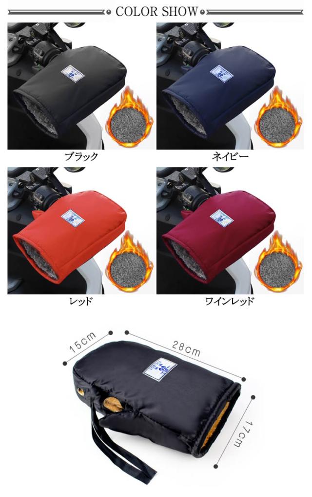 | 【防寒・防風裏ボア&中綿入りハンドルカバー】 素材を厚くして寒風を防ぎ、雪の日、大風の日に使用できる。 自転車、電動自転車、バイク、オートバイ/原付/スクーターなど幅広く対応できます。 取り付けも簡単、グリップとレバーを穴に差し込み、紐を締めるだけ。 表地は高い撥水性を備え、手を濡れないで暖かく保護でき、雨の日、雪の日でも快適に走行できます。 | |