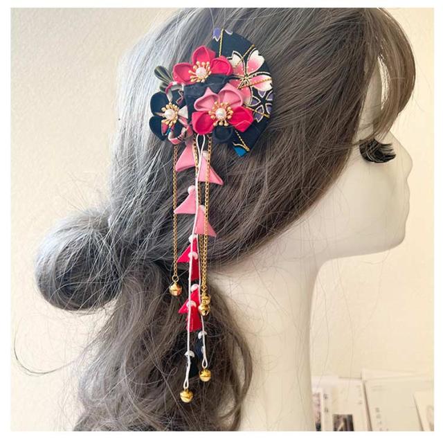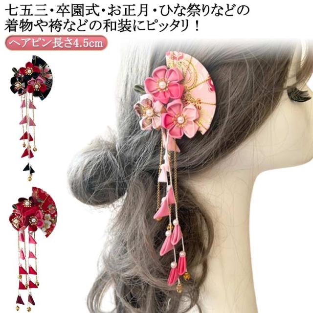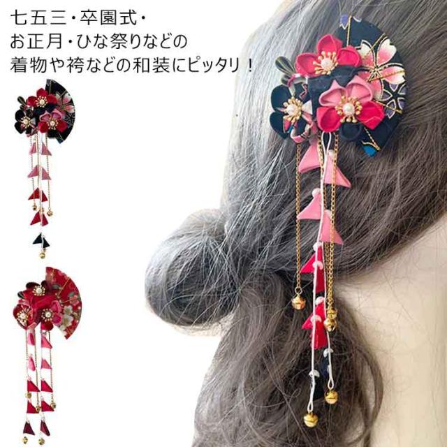 ピンク 卒業式 レッド 黒 紫 つまみ細工 ちりめん パープル ちりめんかんざし 三歳 青 イエロー 髪飾り 花盛り ブラック 七五三 卒園式 クリップ留め 藤下がり 着物 浴衣 ヘアクリップ ヘアアクセサリー かみかざり 髪飾り 七歳