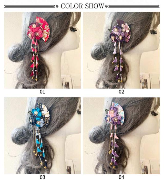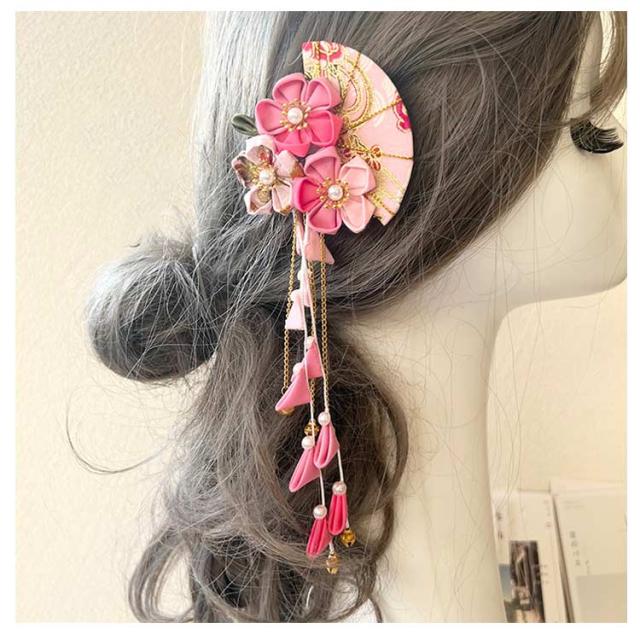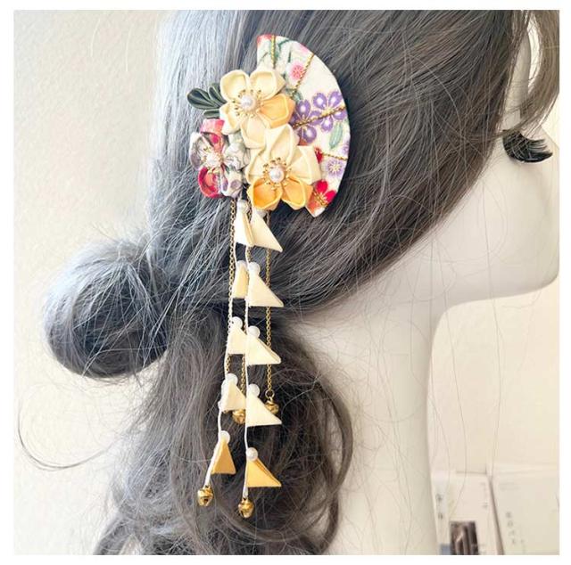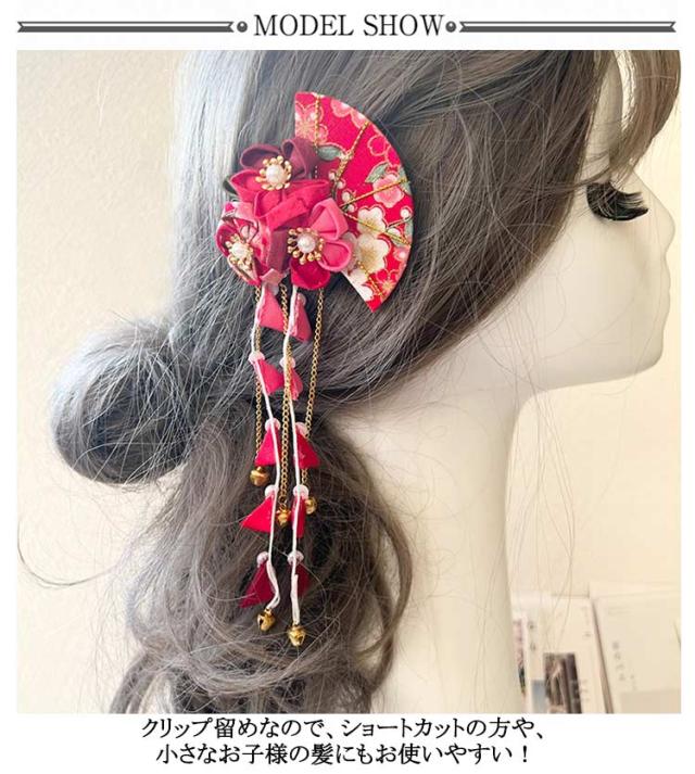 | 七五三・卒園式・お正月・ひな祭りなどの着物や袴などの和装にピッタリ! クリップ留めなので、ショートカットの方や、小さなお子様の髪にもお使いやすい! | |