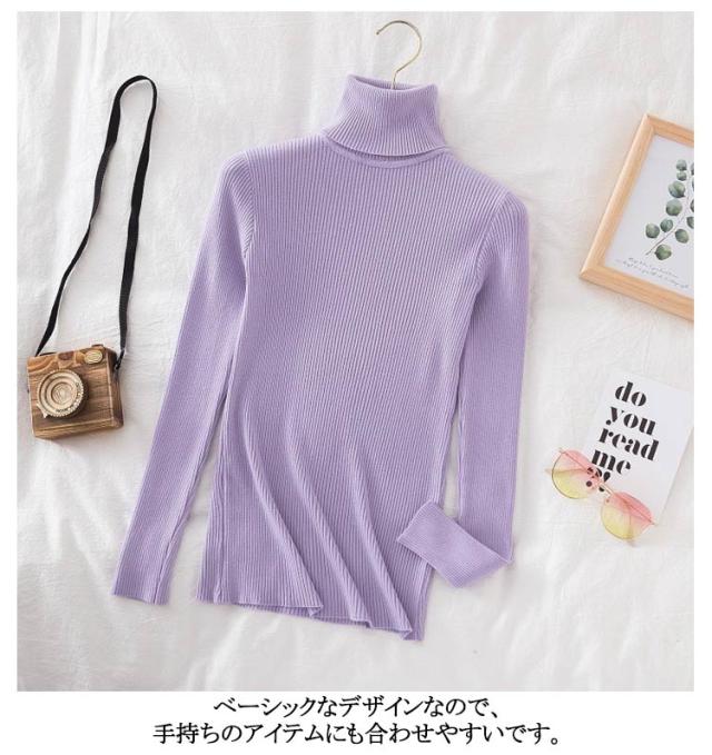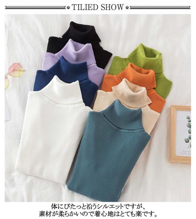 秋 トップス 着回し 全24色 オフタートル ニットソー 冬 長袖 春 定番 タートルネック 薄手 リブニット シンプル 無地 ニット ハイネック スッキリ 美シルエット