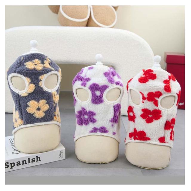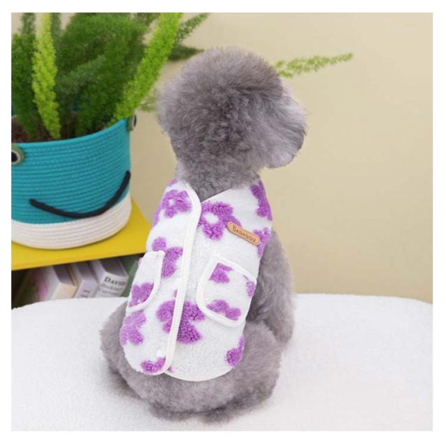 | 寒い季節にぴったりの犬服、 可愛らしいお花柄背開きベスト もこもこ暖かい素材 重ね着にも最適 | |