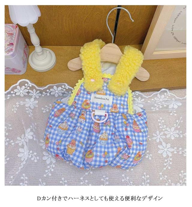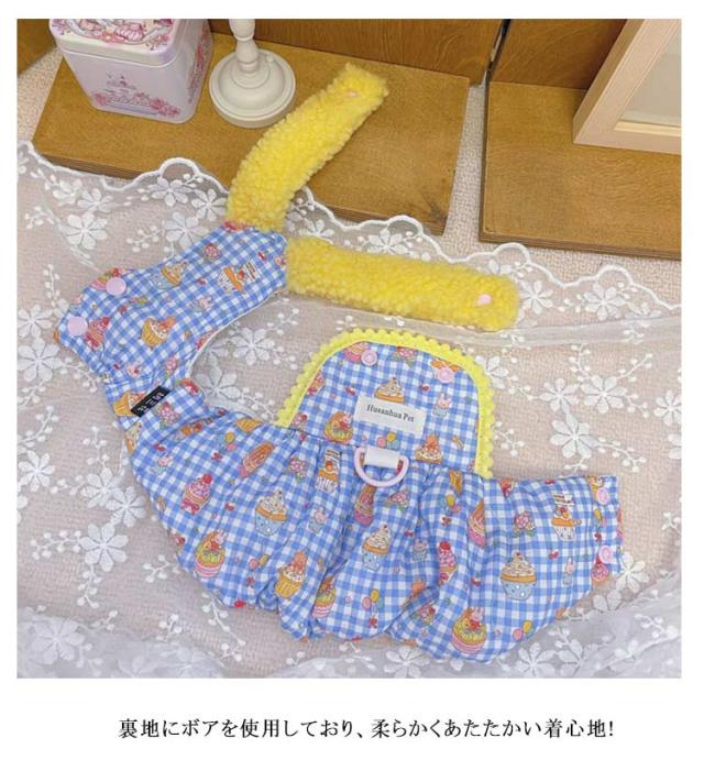 | 可愛いパンプキンスカートウェア 裏地にボアを使用しており、柔らかくあたたかい着心地! Dカン付きでハーネスとしても使える便利なデザイン | |