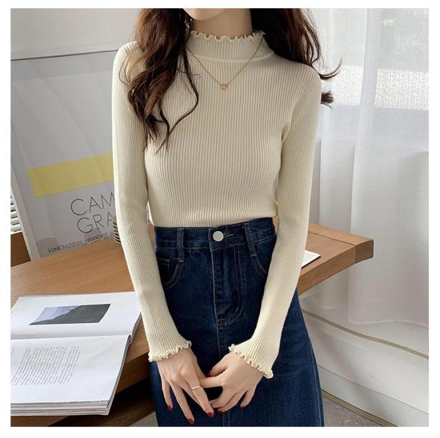 フリル フリル メロウフリル オフィスカジュアル リブニット ニット セーター トップス レディース ニットセーター ハイネック フリルネック 長袖 ニット チクチクしない 重ね着 オフィス きれいめ プルオーバー 秋冬 春 秋 冬