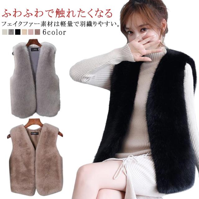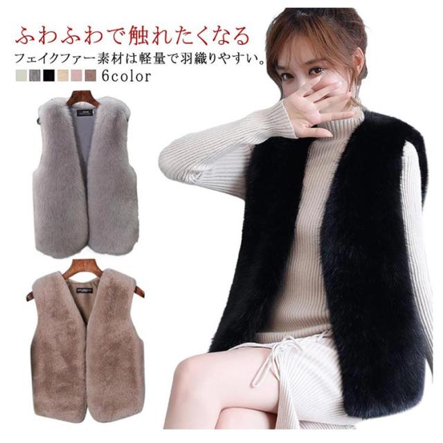 羽織りもの ジレ 送料無料 Vネック レディース 前開き 送料無料 フェイクファー ジレ コート ノースリーブ ファーベスト ベスト 重ね着 羽織りもの ショート丈ベスト エコファー ライトアウター もこもこ