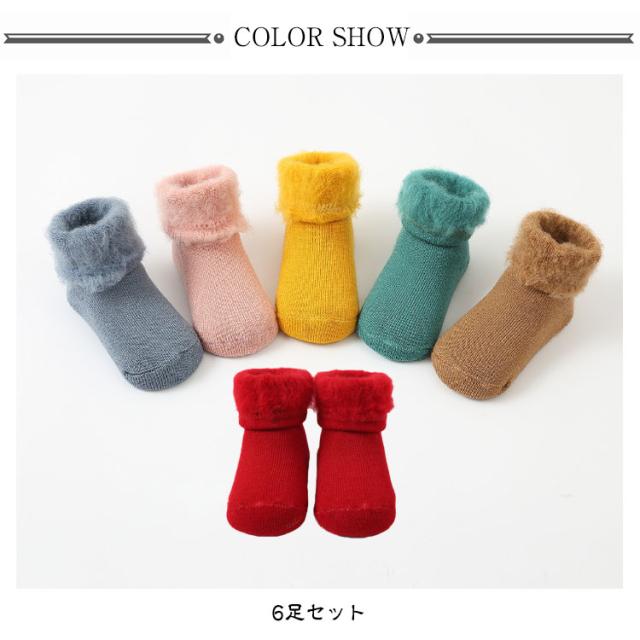 裏起毛 女の子 ソックス 靴下 赤ちゃん 保温 6足セット キッズ ベビー ソックス ベビー 新生児 赤ちゃん 新生児 靴下 裏ボア もこもこ 暖かい 出産祝い ギフト プレゼント