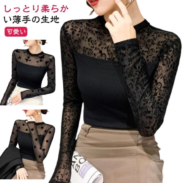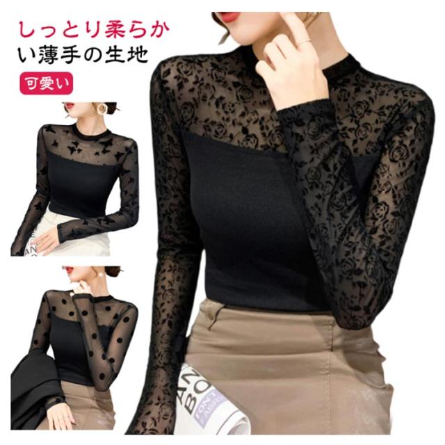 カジュアル カットソー 長袖 カットソー 春秋 秋 伸縮 夏 首つまり インナー ハイネック レース 立ち襟 スタンドネック レイヤード 無地 重ね着 春 トップス 薄手 ストレッチ きれいめ 黒 大人 ハイネック プルオーバー