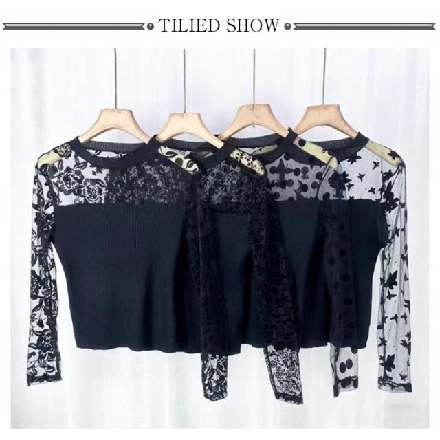 | しっとり柔らかい薄手の生地 花柄のレース部分はインナーが見えないように浅めに作られてます。 ハイネックなので、ジレやベストなどのインナー使いにもぴったり。 | |