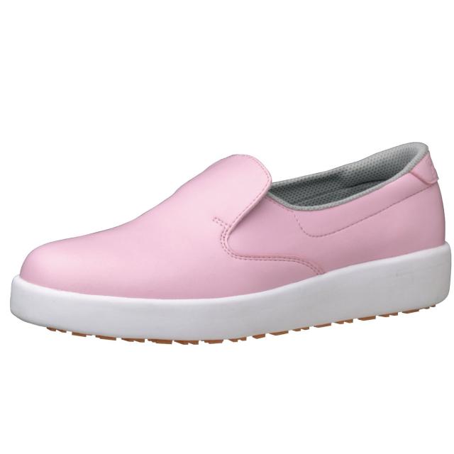 説明 商品紹介 滑らないことが、第一の安全である職場にハイグリップソール。水や油などで滑りやすいレストランやファーストフード店の厨房での作業や、足もとが不安定になる清掃作業などに、ミドリ安全のハイグリップが威力を発揮します。スリップを起こしにくい新開発の底型意匠で、滑りやすい足もとをしっかりサポート、ノンマーキングですから、床を汚すことはありません。 材質 先芯:なし、甲被:人工皮革/合成皮革(ブラックとホワイト以外は人工皮革)、中敷:EVAインソール(抗菌・防臭)、靴底:EVA/合成ゴム ※つま先保護性能(先芯装備)はありません。 製法 C式 標準重量 520g/足(基準26.0cm) ※両足での重さです。 色 ホワイト、ブラック、ブルー、ピンク、グリーン 商品詳細 ●靴底の側面がよりキレイに保たれるインジェクション方式を採用し、靴底の側面が汚れにくく、汚れを落としやすくなりました。 ●ミッドソールの製法を変える事により、耐久性が向上し、クッション効果が長続きするようになりました。 ●ヒールをカットし、歩く時かかとから地面に接地する際、面で床面を捉える事で、安定性・歩行性を向上させます。 ●つま先の反りを上げて、つまずきにくくなりました。 特長 ●EVA/ラバー2層底(HG):軽量でクッション性と耐久性にも優れ、水・油等の滑りやすい床でも滑りにくいハイグリップソールです。 ●耐滑底(最高レベル):最高レベルの耐滑性。油や水などで特に滑りやすい床面での作業に適した滑りにくい靴です。 ●スリップサイン:靴底に底減りが目視でわかる3ヵ所のサイン付き。交換時期の目安です。 ●軽量設計:甲板、ソール等の素材、製法にこだわった軽量設計の靴です。 ●かかと衝撃吸収:クッション性に優れた素材を使用し、足にかかる衝撃を軽減します。 ※商品のデザイン、仕様、価格等は予告なく変更となる場合がございます。 ●耐油性:耐油性に優れた特殊配合ビニルを使用。 ●動・植物油等に威力を発揮 ●滑りにくいハイグリップソール。 ●軽量でクッション性に優れている。 ●抗菌・防臭加工のクッションインソール。 ブランド紹介 【ミドリ安全】 1952年の創立以来、豊富な経験とすぐれた開発力で安全靴の世界をリードしてきたミドリ安全。 安全靴やヘルメ ット、保護メガネに作業着・作業手袋などのさまざまな作業用品から防災用品・熱中対策・マスクなどの日用品まで、幅広い安全保護具を扱う安全用品専門のブランドです。