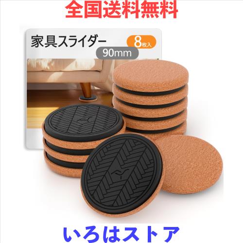 家具スライダー 8枚入 直径90mm 家具すべーる 床保護シート 家具移動キャスター 家具移動 家具の移動が楽になる 傷防止、防音 (茶色)