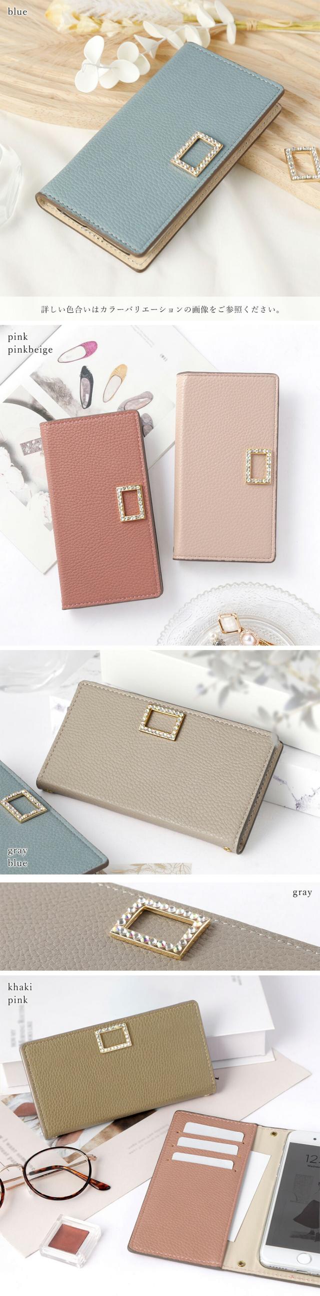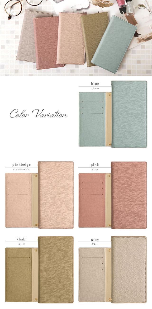 スモーキーなカラーと淵のブラウンがオシャレなスマホケース全5色×ゴールドスクエアデコ