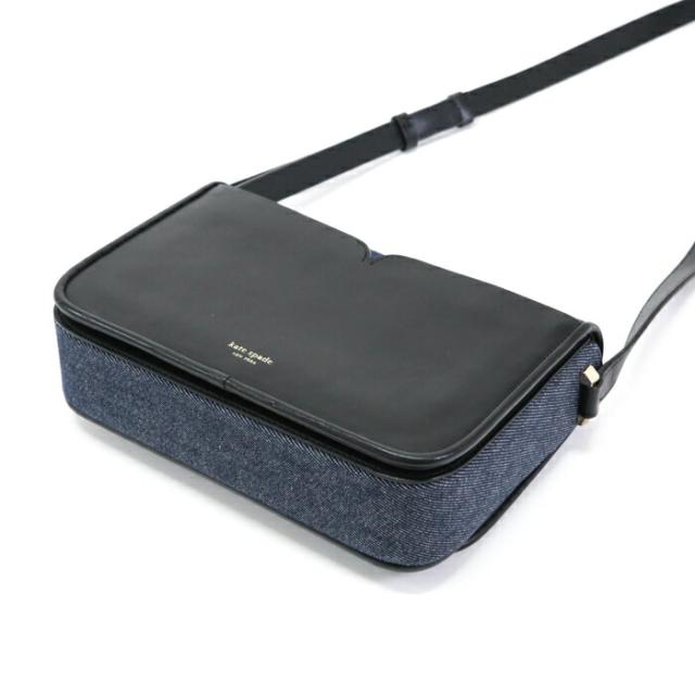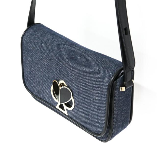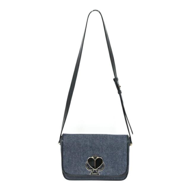 ケイトスペード Kate spade 二コラ デニム ツイストロック キャンバス レザー ショルダーバッグ PXRUB066 斜めかけ ポシェット ショルダーウォレット レディース ネイビー / ブラック 中古 man19012