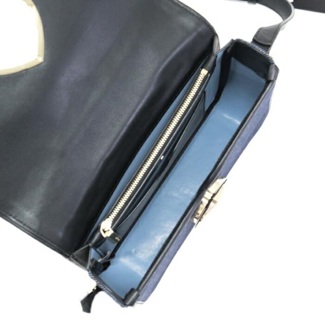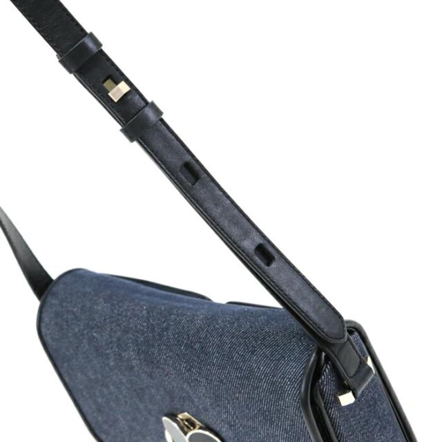 二コラ デニム ツイストロック キャンバス レザー ショルダーバッグ PXRUB066 斜めかけ ポシェット ショルダーウォレット レディース ネイビー / ブラック