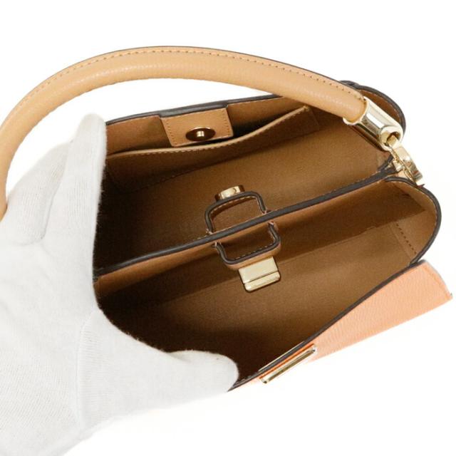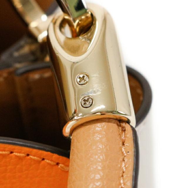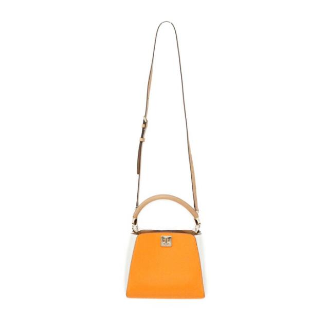 フィービー カラーブロック トップ ハンドル サッチェル グレインレザー KG749 ショルダーバッグ クロスボディ 斜め掛け 2WAYバッグ トップハンドルバッグ レディース ターメリックルートマルチ (オレンジ)