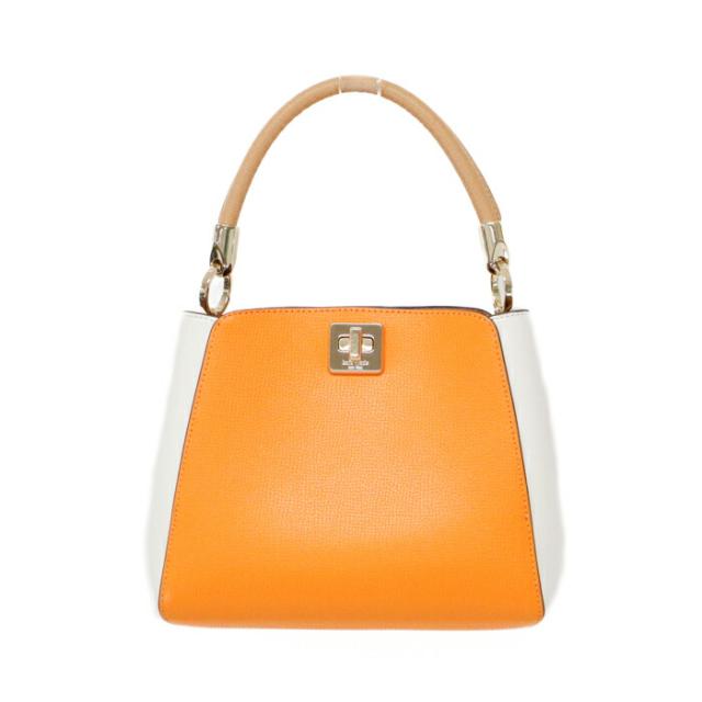 【Aランク】 ケイトスペード Kate Spade フィービー カラーブロック トップ ハンドル サッチェル グレインレザー KG749 ショルダーバッグ クロスボディ 斜め掛け 2WAYバッグ トップハンドルバッグ レディース ターメリックルートマルチ (オレンジ) 美品 中古 mbg27021