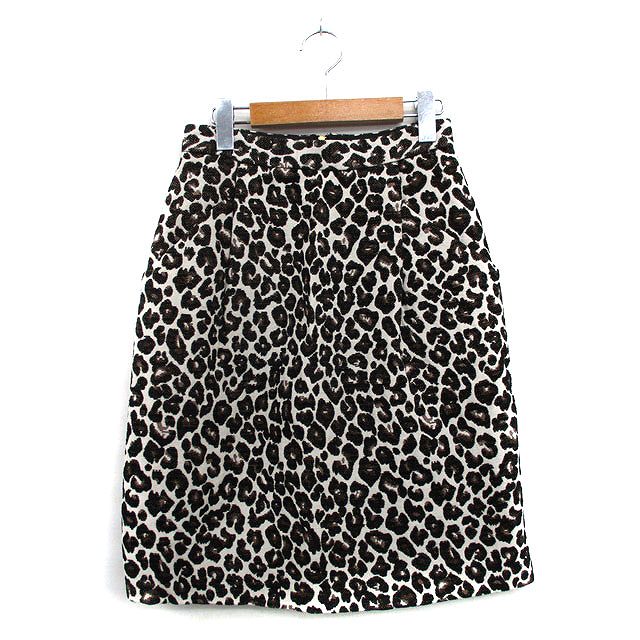 【中古】ボンメルスリー BON MERCERIE タイトスカート ミニ ギャザー レオパード 34 アイボリー 白 /KT36 レディース
