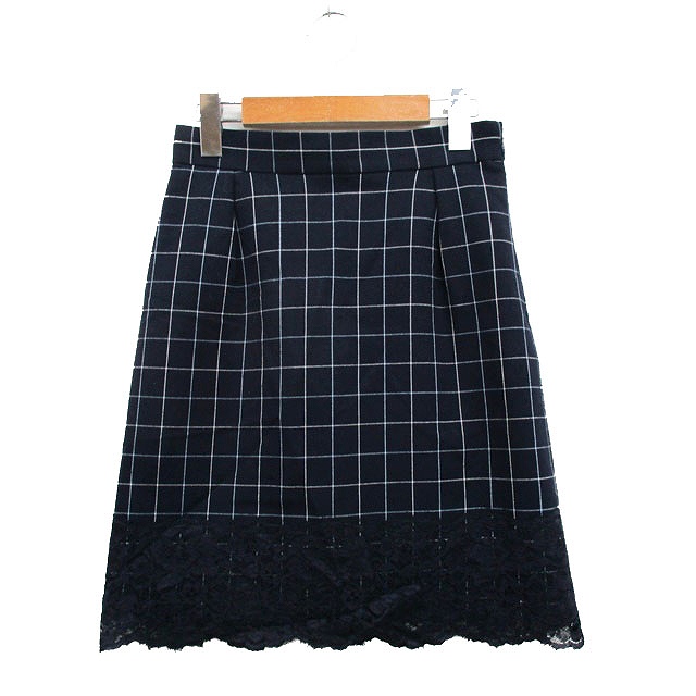 【中古】レストローズ L'EST ROSE 台形 スカート ミニ レース チェック 2 ネイビー 紺 /KT37 レディース