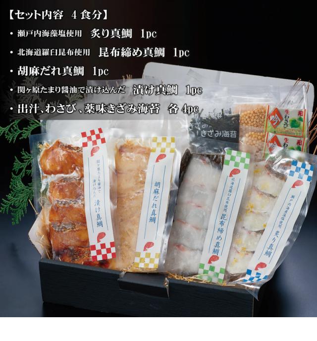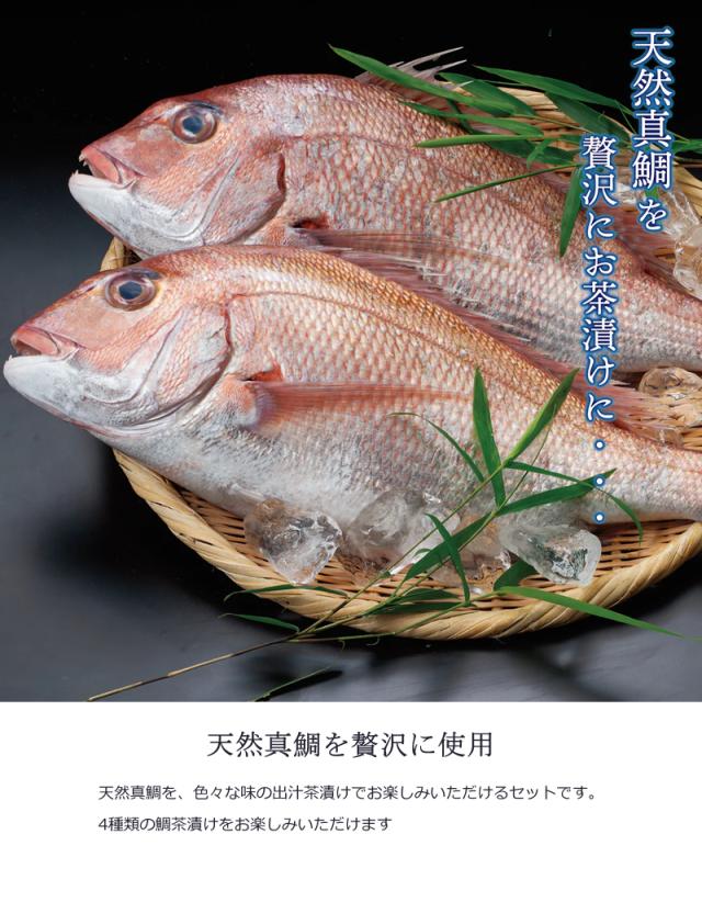 天然真鯛を、色々な味の出汁茶漬けでお楽しみいただけるセットです。