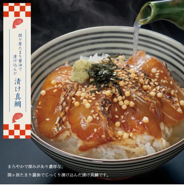 まろやかで深みがあり濃厚な、関ヶ原たまり醤油でじっくり漬け込んだ漬け真鯛です。