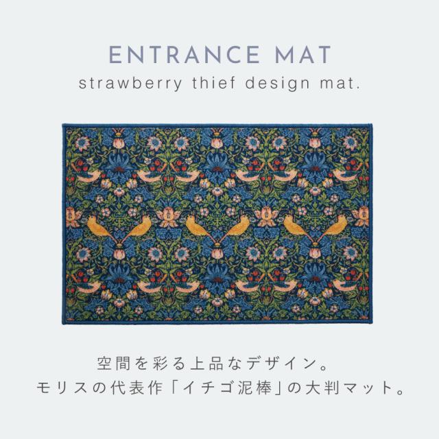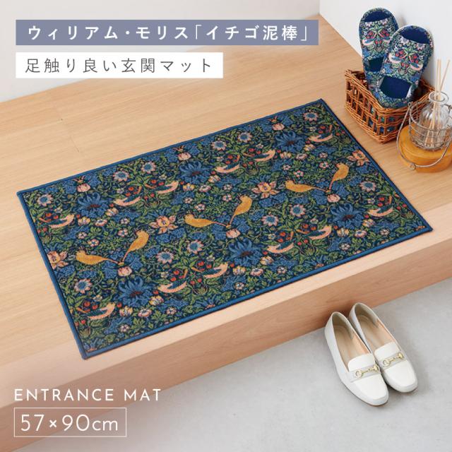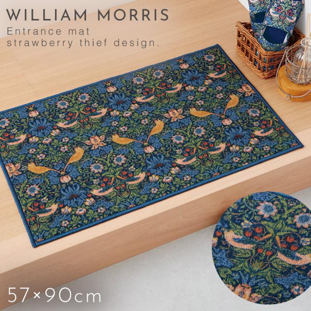 玄関マット いちご泥棒 ウィリアムモリス 北欧 おしゃれ 室内 洗える 大判 57×90cm 洗える大判玄関マット モリスいちご泥棒