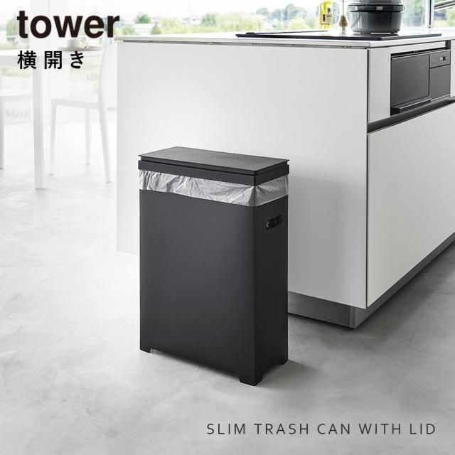 スリム蓋付きゴミ箱 タワー 横開きタイプ 山崎実業 tower ゴミ箱 横型 45リットル 横開き 横長 ふた付き スリム キッチン おしゃれ モノトーン ホワイト ブラック 1524 1525 1526 1527