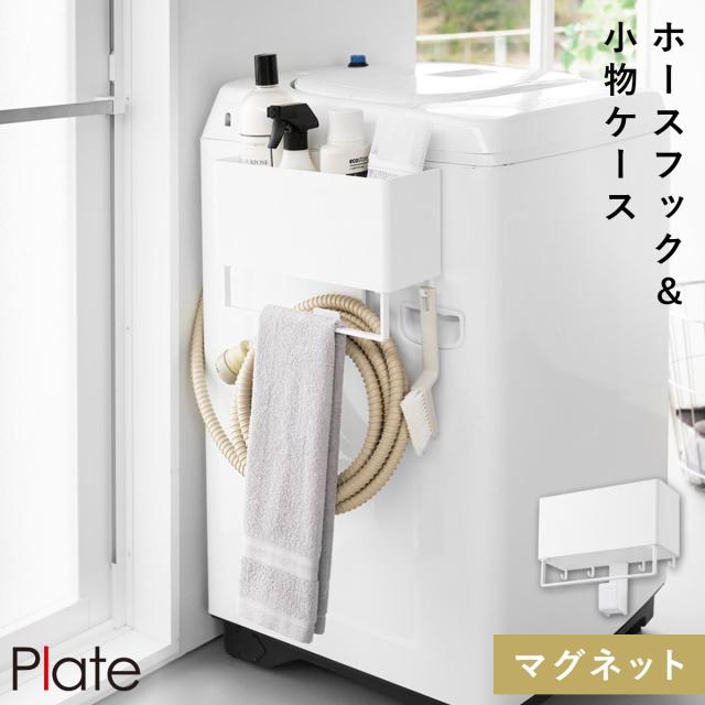 マグネットストレージバスケット プレート タオルバー&ホースフック付き ホワイト 山崎実業 Plate 洗濯機 マグネット 収納 ラック タオルハンガー 給水ホース おしゃれ モノトーン ホワイト 1557