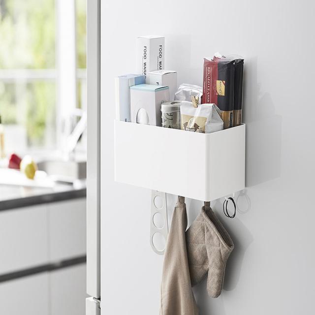 冷蔵庫横やコンロまわりに取り付けてキッチン用品の収納にも。