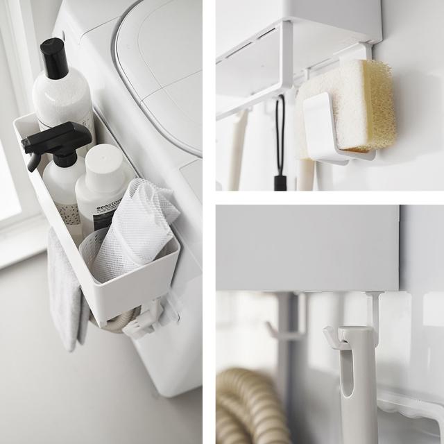 洗濯機横に取り付けて、ランドリー小物や洗面まわりのドライヤーやブラシなどの収納にも。