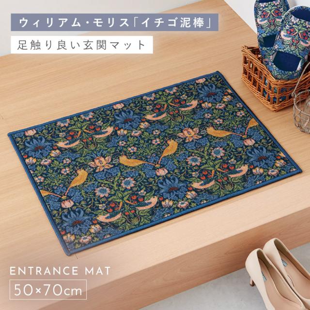 玄関マット いちご泥棒 ウィリアムモリス 北欧 おしゃれ 室内 洗える 50×70cm 洗える玄関マット モリスいちご泥棒
