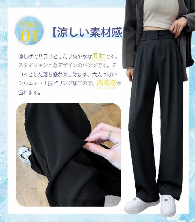 春新作 ひんやりパンツ ロングパンツ レディース アイスシルクワイドパンツ スーツパンツ 接触涼感 ストンとした落ち感 サルエルパンツ 知的 おしゃれ 春 夏 ハイウエスト オフィス 通勤 OL お出掛け