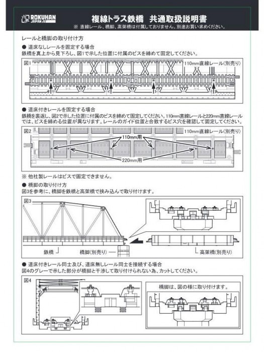 商品詳細:レールは別売りのR045(道床無し110mm レール)のご使用をお勧めいたします。 生産国:中国 素材・材質:ABS、洋白、ステンレス 商品サイズ:W6.5cm×D22cm×H5.5cm×1本 仕様:対象年齢:15歳以上 セット内容:複線トラス鉄橋 (ベージュ)×1本