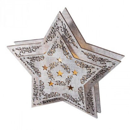 商品詳細:木の風合いが温もりを感じる星型のオブジェです。LEDの灯りがクリスマスのムードを盛り上げます。ご家庭のインテリアとしてはもちろん、お店やパーティー会場等にもオススメです。 生産国:中国 素材・材質:木 商品サイズ:W380×H380×D70mm 仕様:使用電池:単3電池×2(別売)