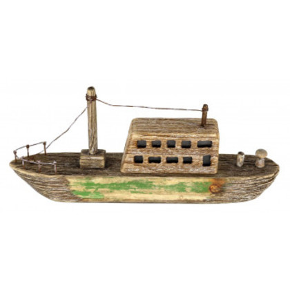 商品詳細:味わいのある船のオブジェ。お部屋に飾ってお気に入りの空間作りを!複数の種類を並べてコレクションにいかがでしょうか。電池を入れると光るので、夜でも楽しめます。 生産国:中国 素材・材質:木・鉄 商品サイズ:W300×H125×D60mm 重量:200g