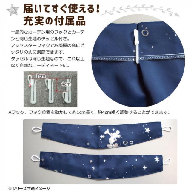 商品詳細:子供部屋にはもちろん大人の方にもぴったりなシンプルなデザインです。 生産国:中国 素材・材質:ポリエステル100% 仕様:洗濯:可(ネット使用)1.5倍ヒダAフック形状安定加工コピーライト:(C)Disney 付属品:タッセル
