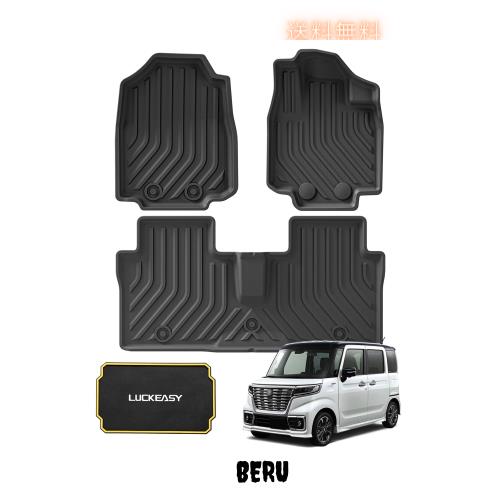 【適合車種】:新型 スペーシア カスタム ギア(すべてのバージョン)。年式:2017年12月〜現行(H29.12-現行)。【セット内容】:運転席用1P、助手席用1P、二列目用1P(3Pセット)。※軟質ゴム製のノンスリップマットが含まれています。※購入する前、形状、年式とモデルを確認してください。