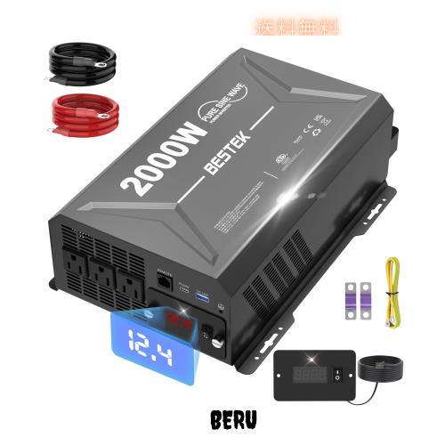 BESTEK インバーター 12v 100v 純正正弦波 2000W 「強化版」 正弦波4000W(瞬間出力) - 切替ディスプレイ付き シガーソケット コンセン