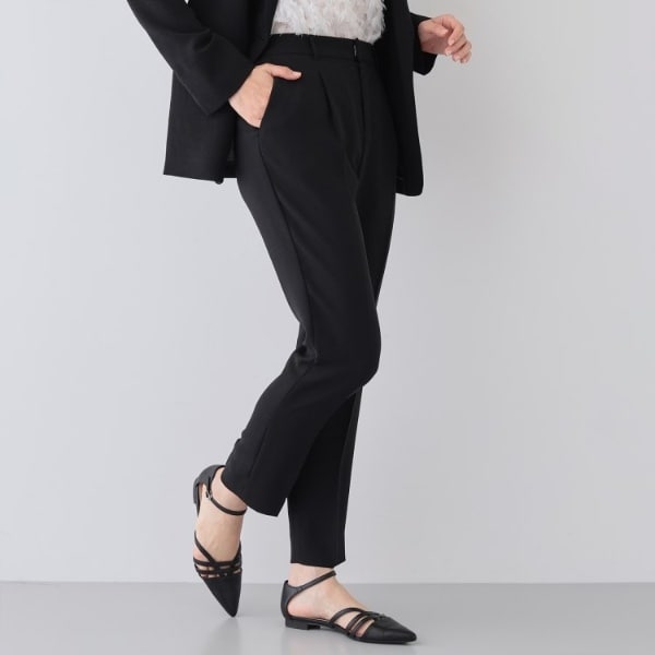 リラックス感がありながらも、キレイ目な印象のスーツ定番のタックテーパードパンツです。