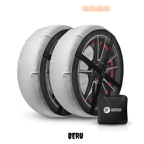 「優れたグリップ力と走行性能」本品は新型の高密度生地を用いて、雪道の上で卓越した滑り止め性能を発揮します。タイヤが滑るのは、雪の上に薄い水があるためです。布製のタイヤチェーンは、その水を吸収し、タイヤと道の接触面積を最大にすることで、摩擦力を高めます。従来の金属型に比べ、布製タイヤチェーンはより静かで平穏な走行が特徴です。ご注意:タイヤチェーンは雪道または凍結道路のみで使用し、40km/h以下で走行してください。