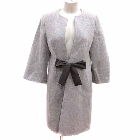 【中古】 DANS LEAU VIS a VIS ノーカラーコート ウエストマーク 総裏地 ウール 11AR L グレー /YK レディース