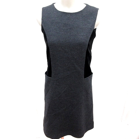 【中古】エムズセレクト m’s select ワンピース タイト ひざ丈 ノースリーブ ウール 36 S グレー 黒 ブラック /RT レディース