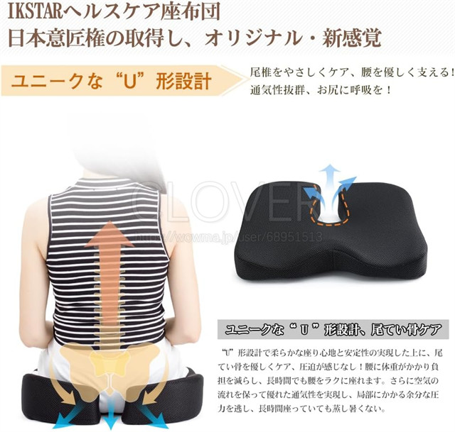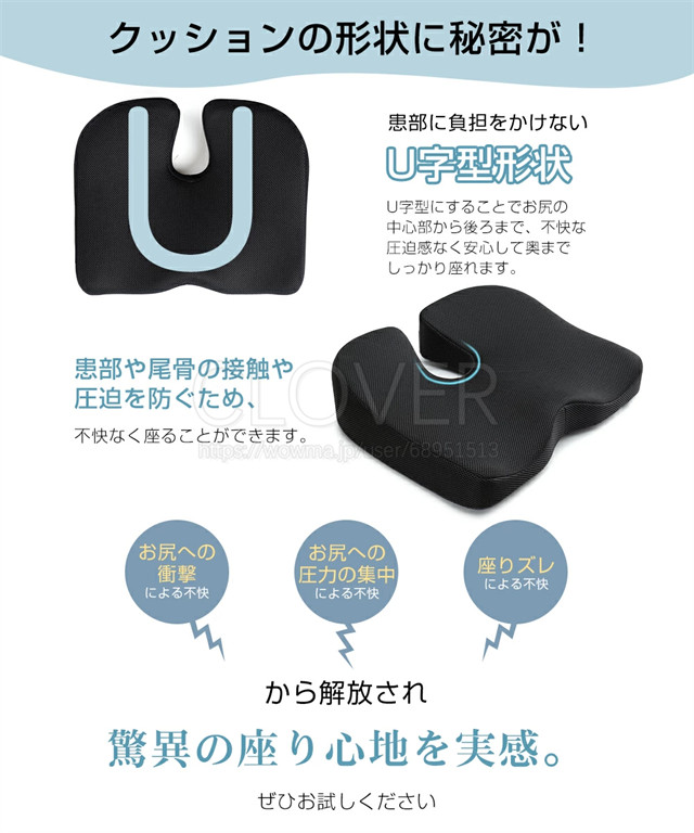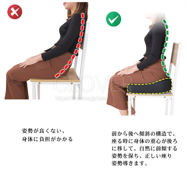 チェアパッド 低反発 椅子 クッション 裏面は滑り止め加工され 通気性 ブラック